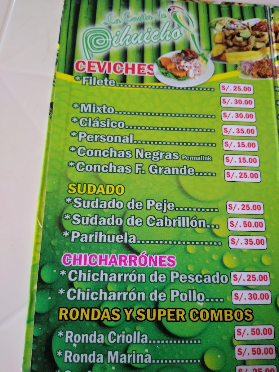 In conclusion, La Casita De Pihuicho provides an extensive and flavorful menu, with a mix of fresh seafood, hearty meats, and traditional sides that perfectly capture the culinary traditions of the region. Whether you're in the mood for a refreshing ceviche, a savory stew, or a comforting plate of rice and pork, this restaurant has something to satisfy every palate.
